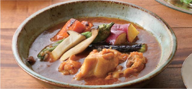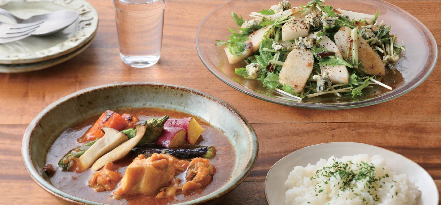 - ③②に①の鶏肉・Aを加えて15分ほど中火で煮てルーを加えてひと煮立ちさせる。