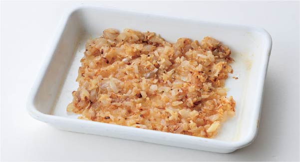 - ②①の鍋にバター・残りのサラダ油を加えて熱し、玉ねぎ・しょうがをじっくりと炒める。