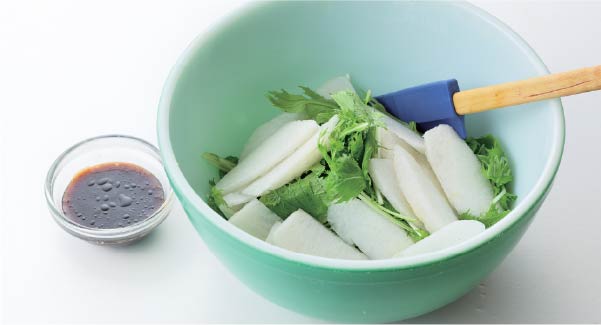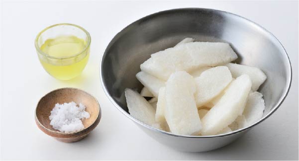 - ①鍋にサラダ油(大さじ2)を熱し、鶏肉に焼き色を付けて一度取り出す。