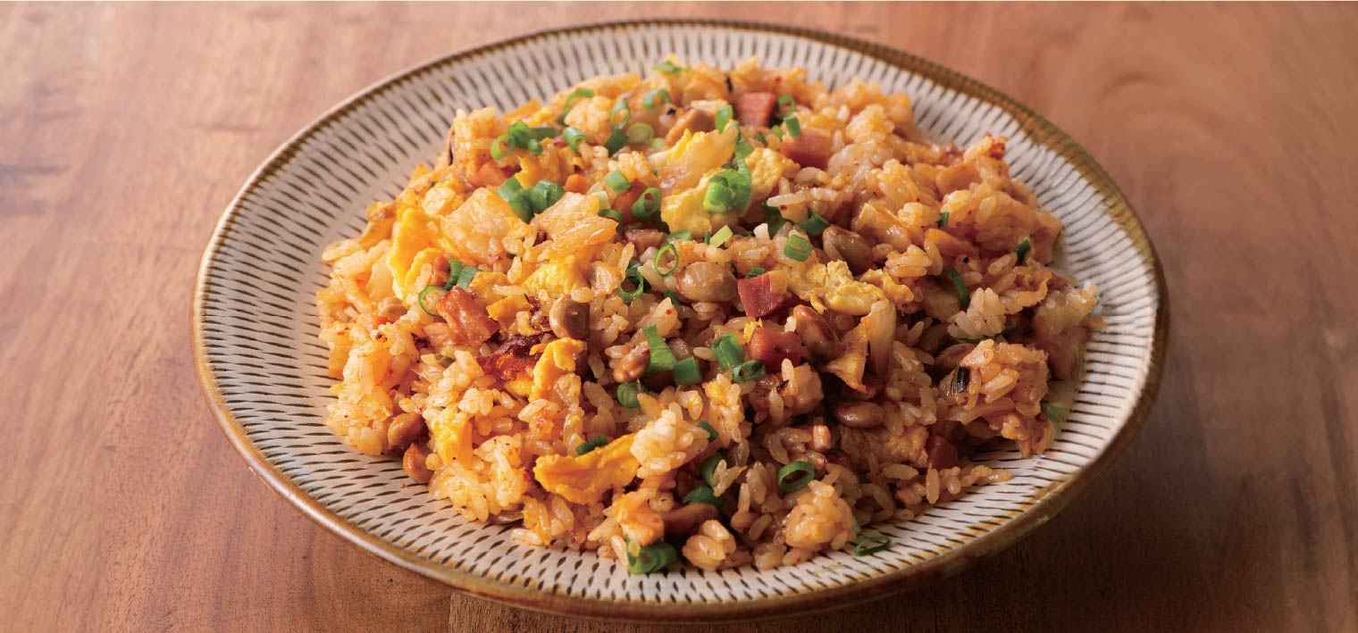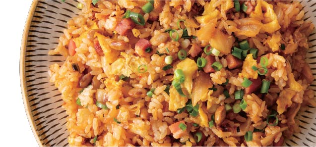 - ③②に残りのごま油を加え、納豆・長ねぎ・ベーコンを炒め、ごはん・①の卵を加えて手早く炒め合わせ、Aで味をつける。