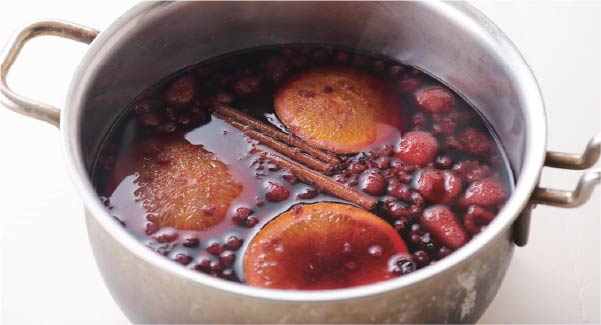 シナモンスティック…2本 ミックスベリー(冷凍)…200g オレンジ(洗って皮ごと輪切り)…1/2個