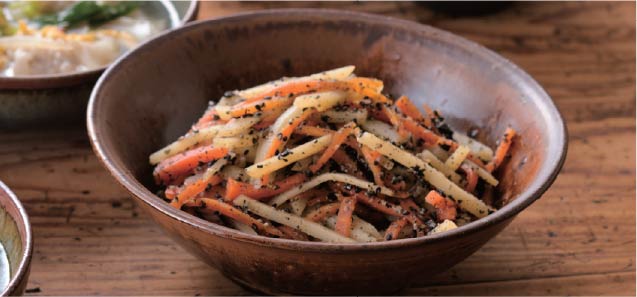 - ②鍋にごま油を熱し、野菜類を炒め、Bを入れて煮立たせる。