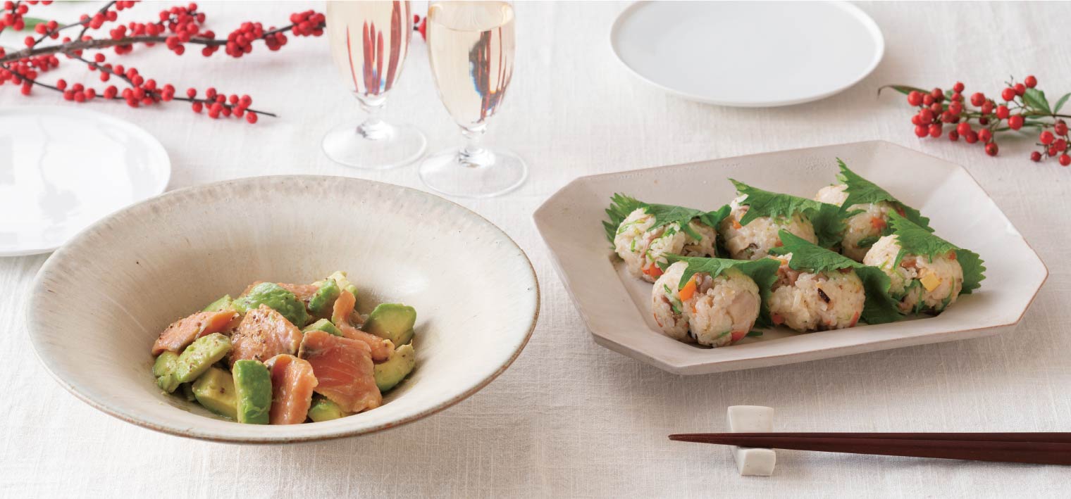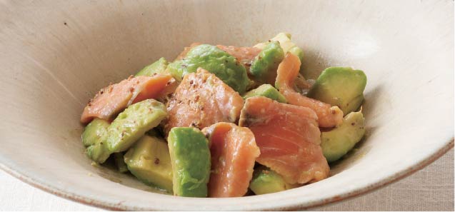 - ②ボウルにアボカド・レモン汁を入れて和え、①のサーモン・合わせたAを加えてさらに混ぜ合わせる。
