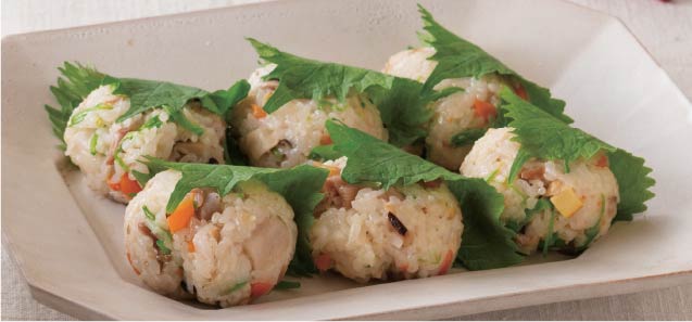 - ③ラップなどを使って一口大に丸めて大葉で包む。